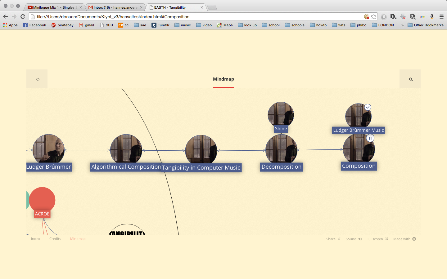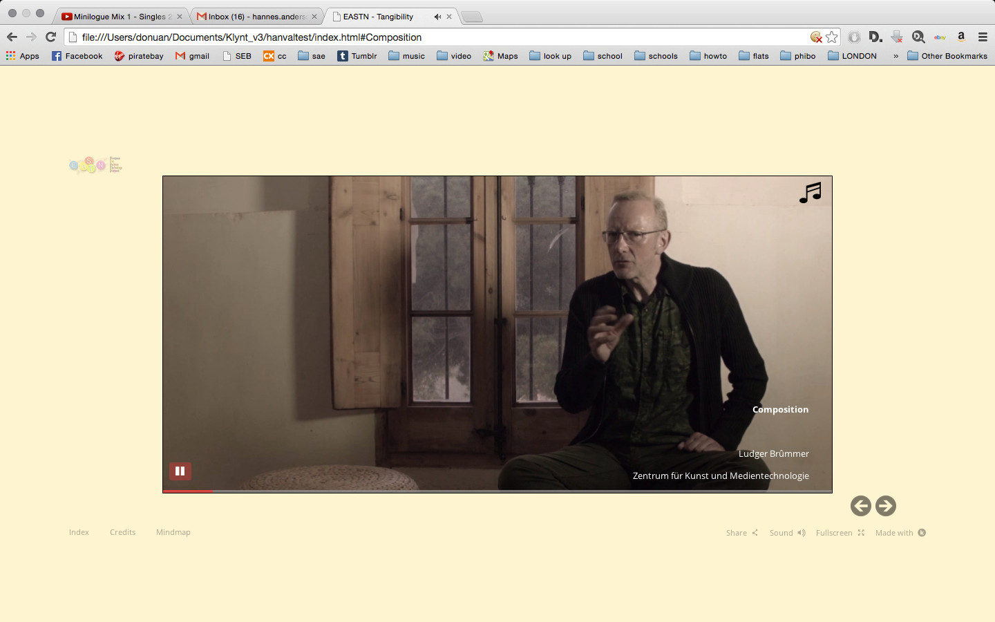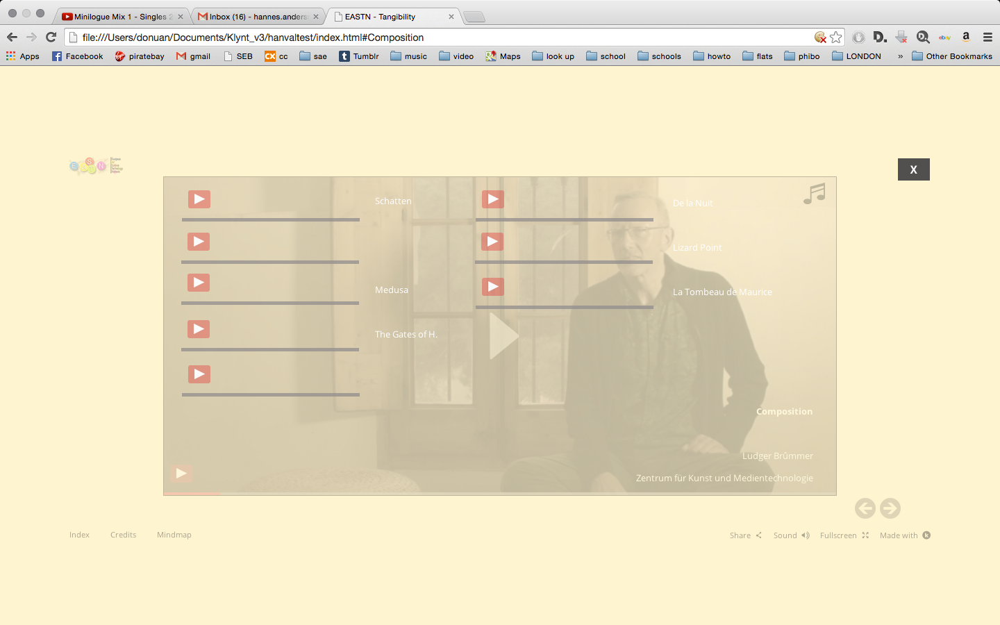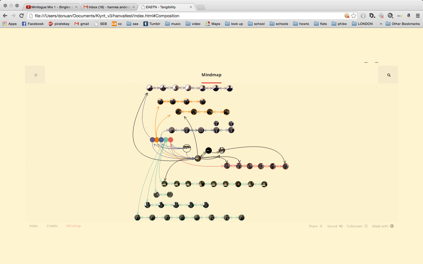 "Tangibility in Art & Technology" is an interactive web work, documenting the exchange of the participants in the EASTN as well as the topics they engage with and how they relate to the concept of tangibility.